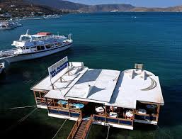 In front of the restaurant by the sea is located Kalidon Floating Restaurant.